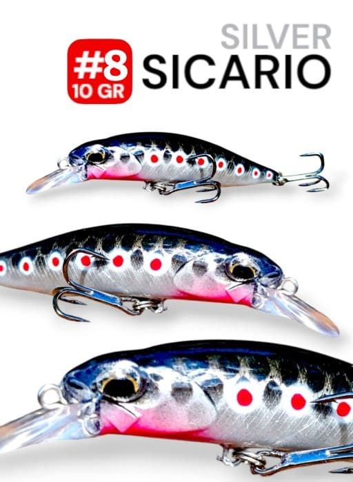El Minnow Sicario Plateado es un señuelo diseñado para imitar el comportamiento de un pez herido, atrayendo a depredadores con su nado natural y su brillo plateado. Ideal para pesca en ríos, lagos y embalses, su diseño aerodinámico permite lanzamientos largos y precisos. Equipado con un sistema de sonajero interno, Transferencia de Peso imantado y anzuelos triples de alta resistencia, garantiza efectividad en cada ataque.